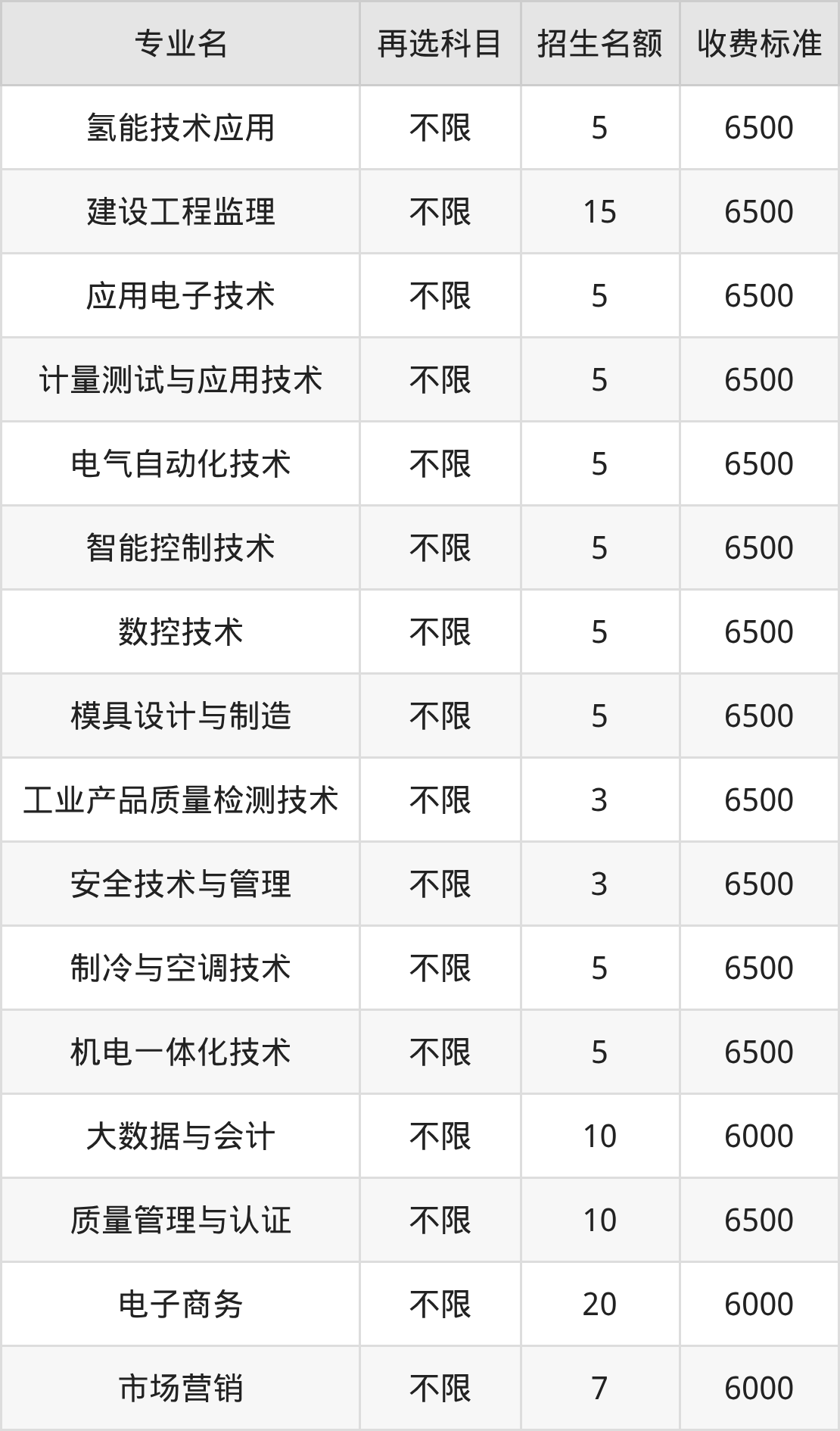 | 高职专科批 | 历史 | 计量测试与应用技术 | 5 |
