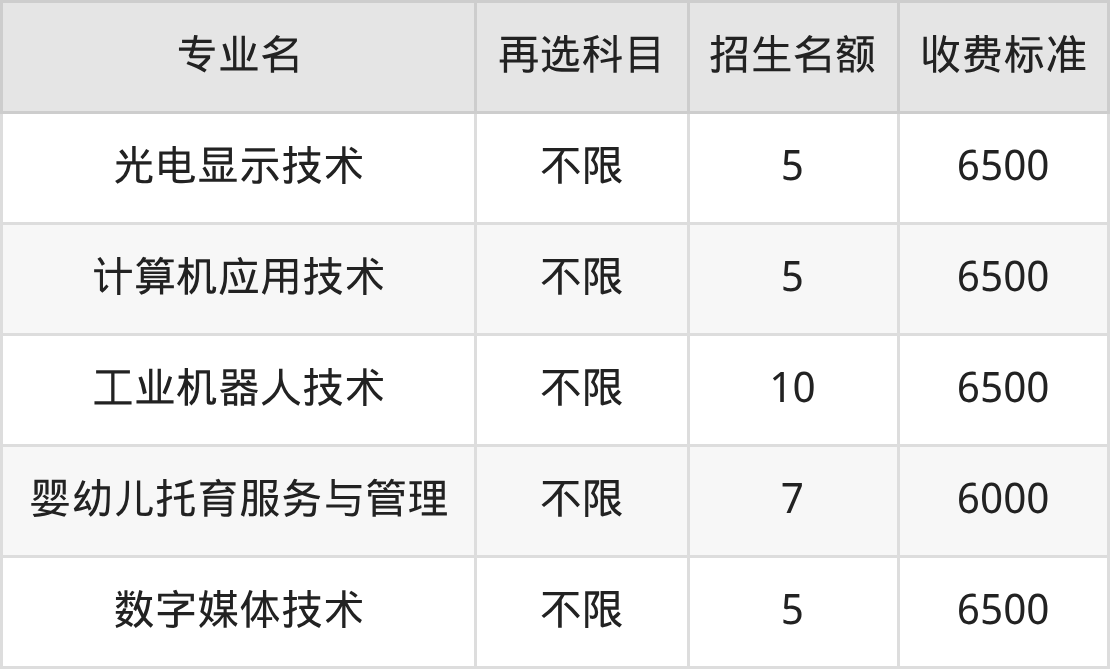 | 高职专科批 | 历史 | 光电显示技术 | 5 |