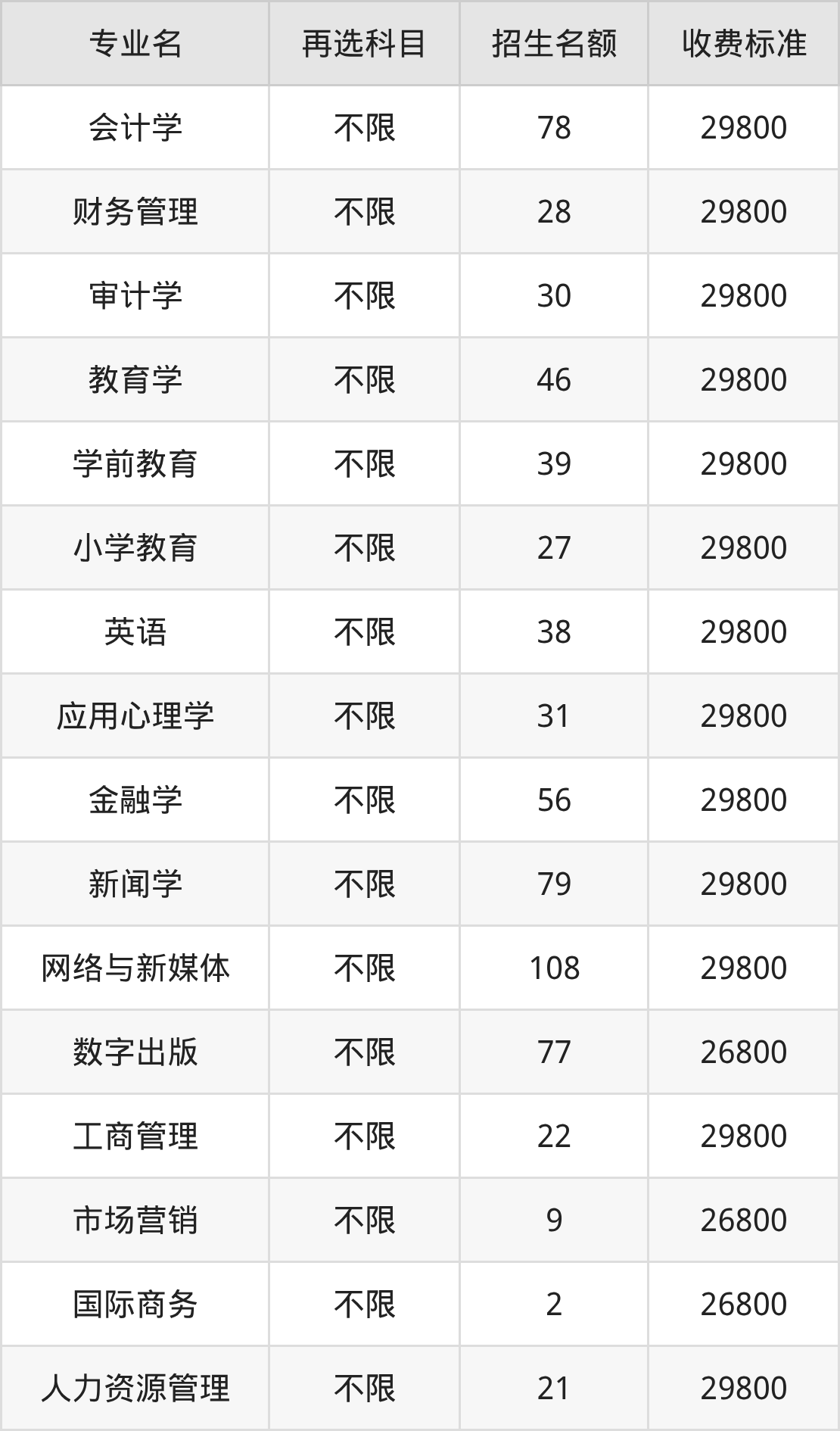 28.体育经济与管理:学费是26800元