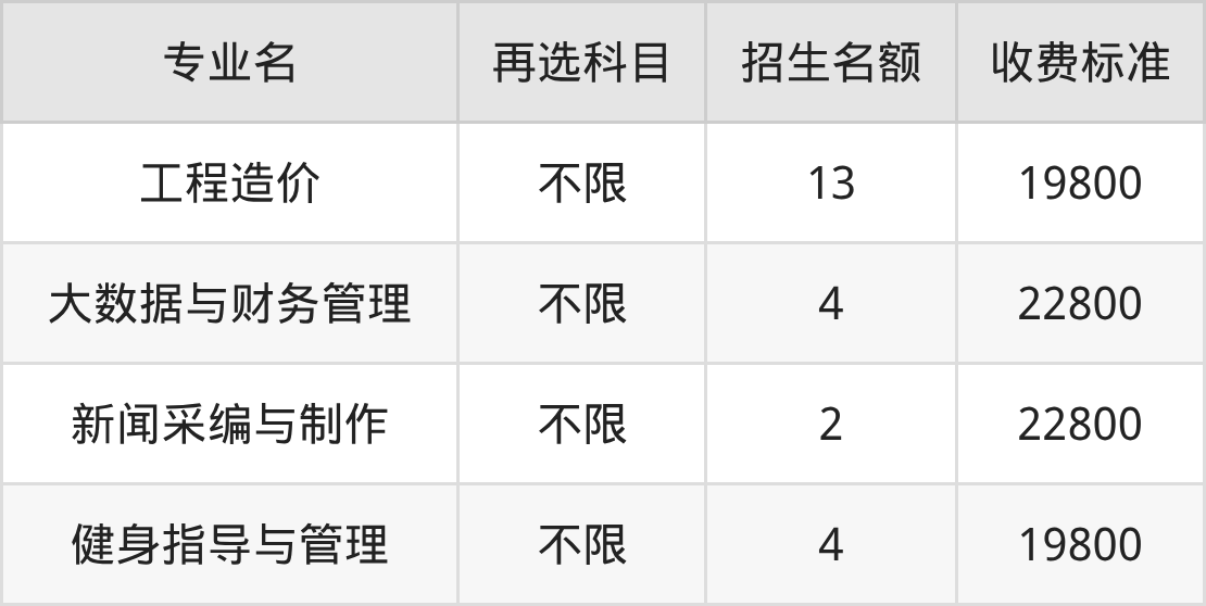 | 高职专科批 | 历史 | 工程造价 | 13 |