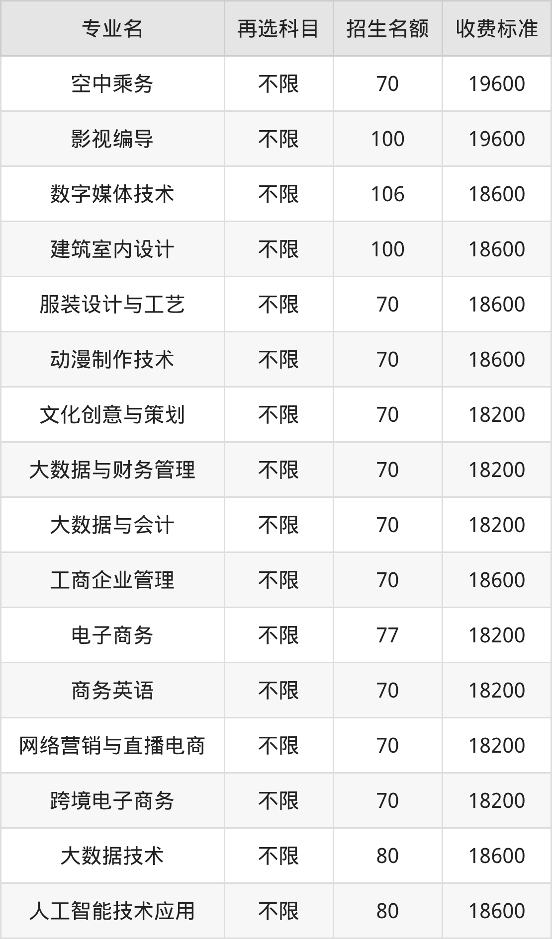 广东亚视演艺职业学院在历史组专科高职批招生的各个专业,每年的学费是18200元-19600元。招生人数最多的专业是药学,2025年招160人,学费是18600元。