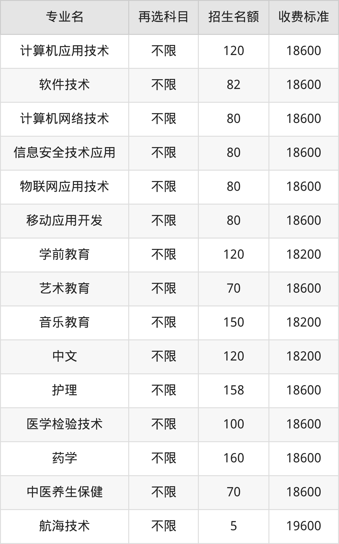 18.软件技术:学费是18600元