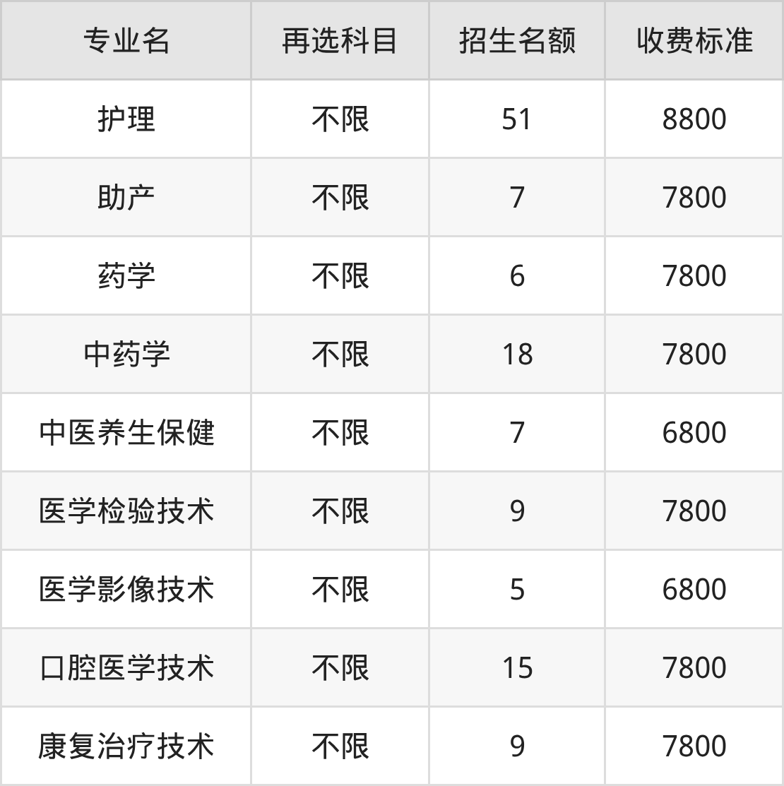 梅河口康美职业技术学院在历史组专科高职批招生的各个专业,每年的学费是6800元-8800元。招生人数最多的专业是护理,2025年招51人,学费是8800元。