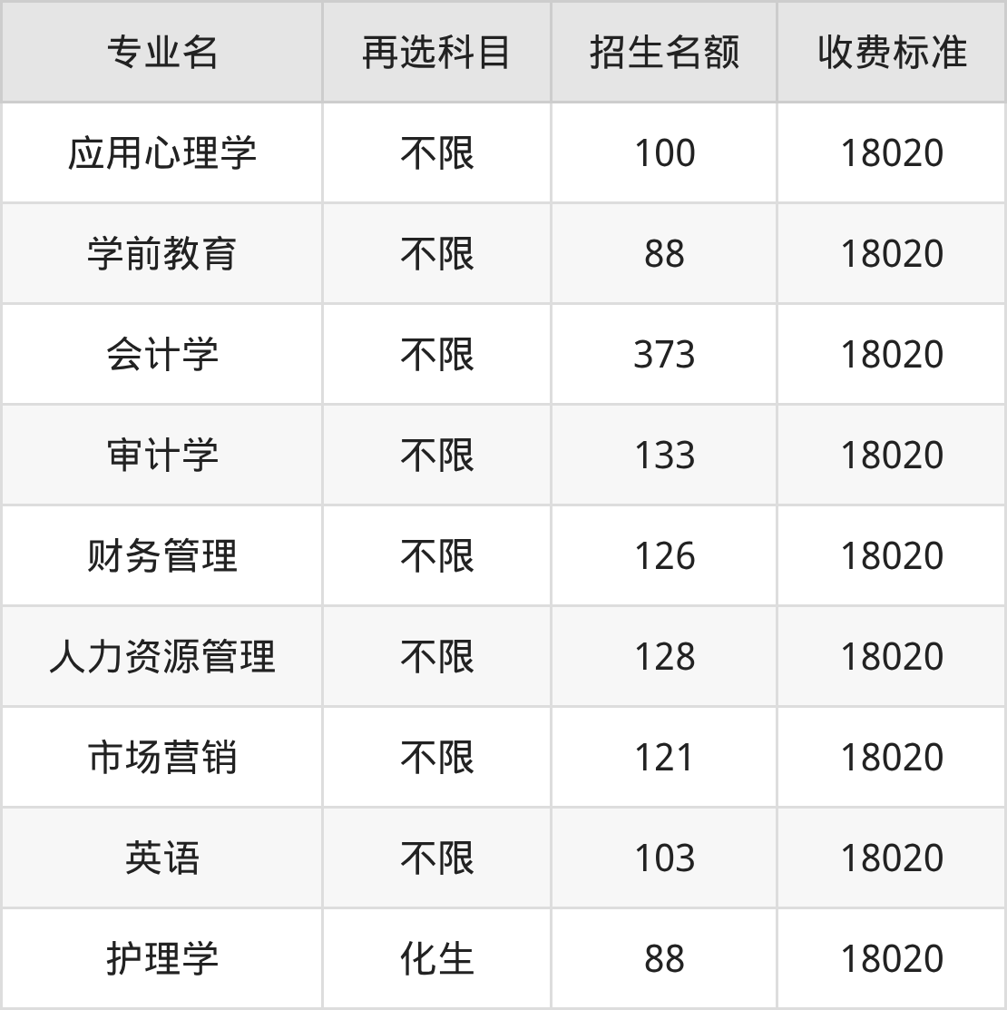 | 批次 | 首选 科目 | 专业名 | 招生 名额 |