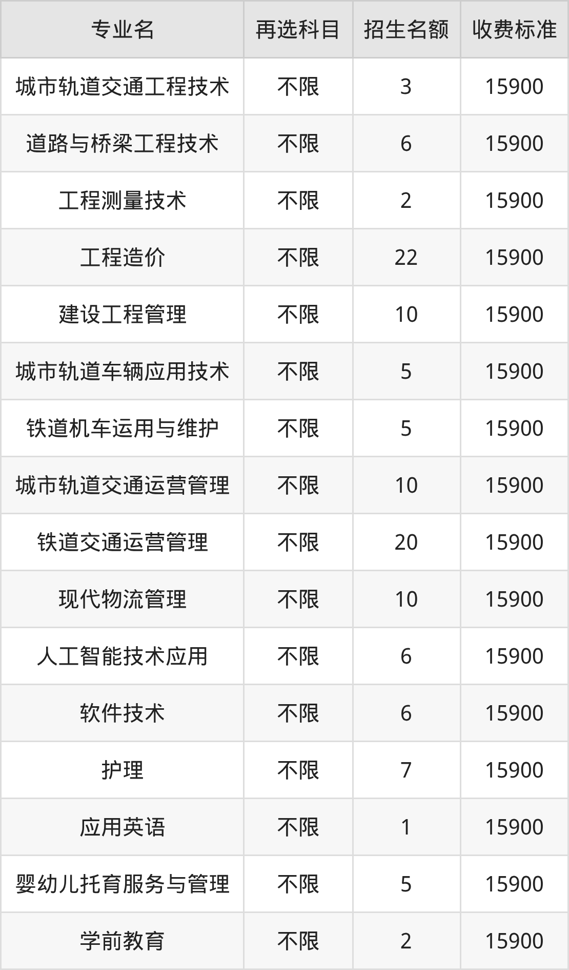 | 高职专科批 | 物理 | 城市轨道车辆应用技术 | 6 |