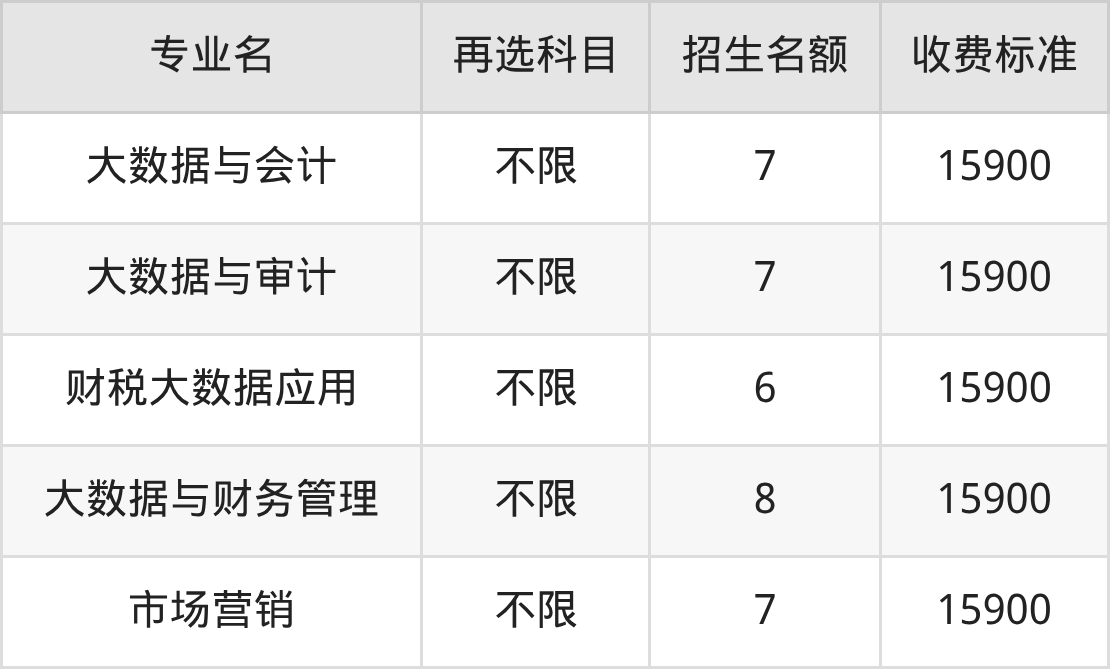 | 高职专科批 | 历史 | 大数据与财务管理 | 8 |