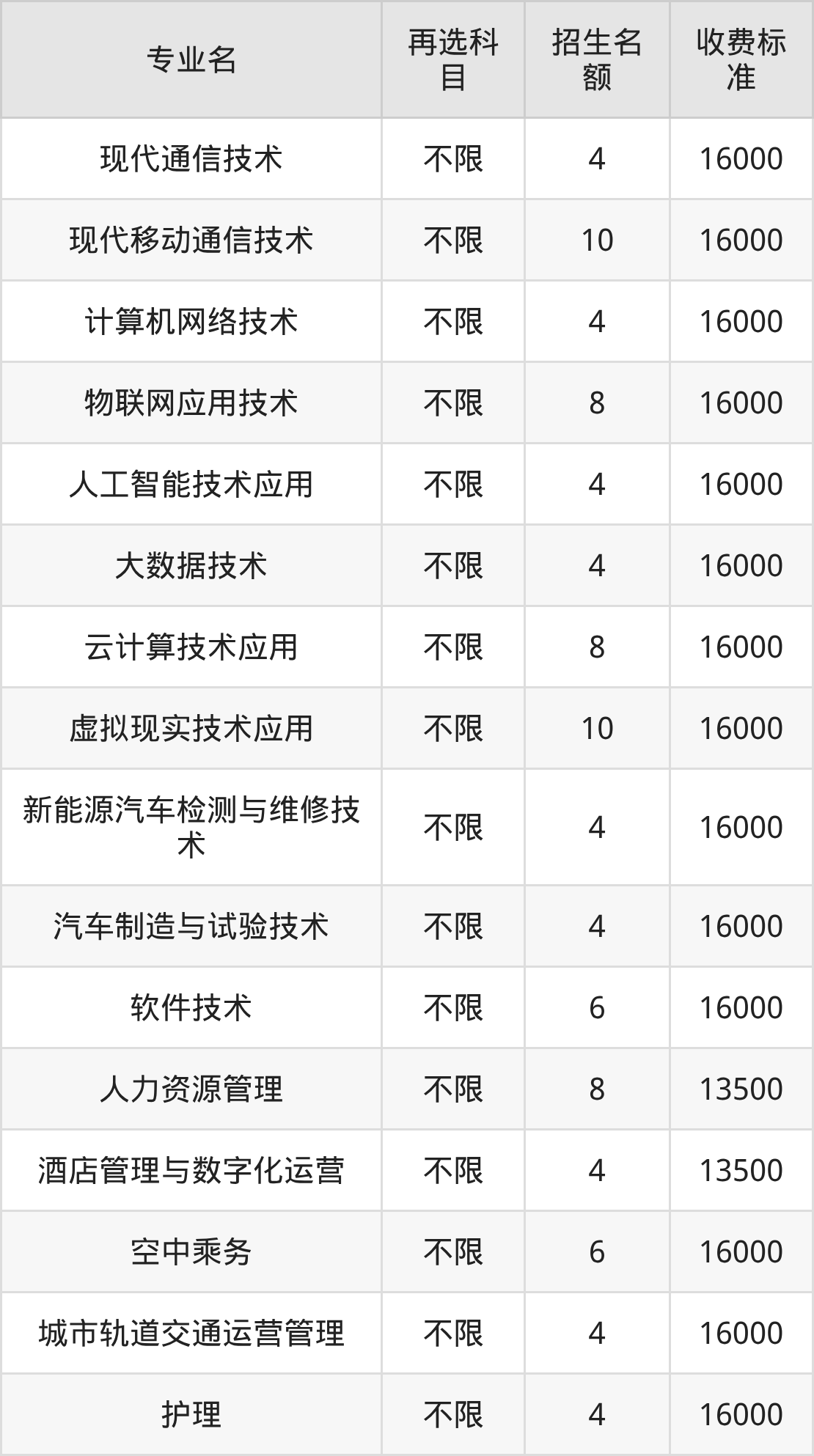 | 高职专科批 | 历史 | 现代通信技术 | 4 |