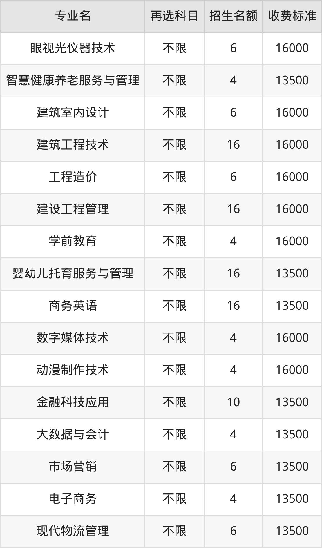 | 高职专科批 | 历史 | 建设工程管理 | 16 |