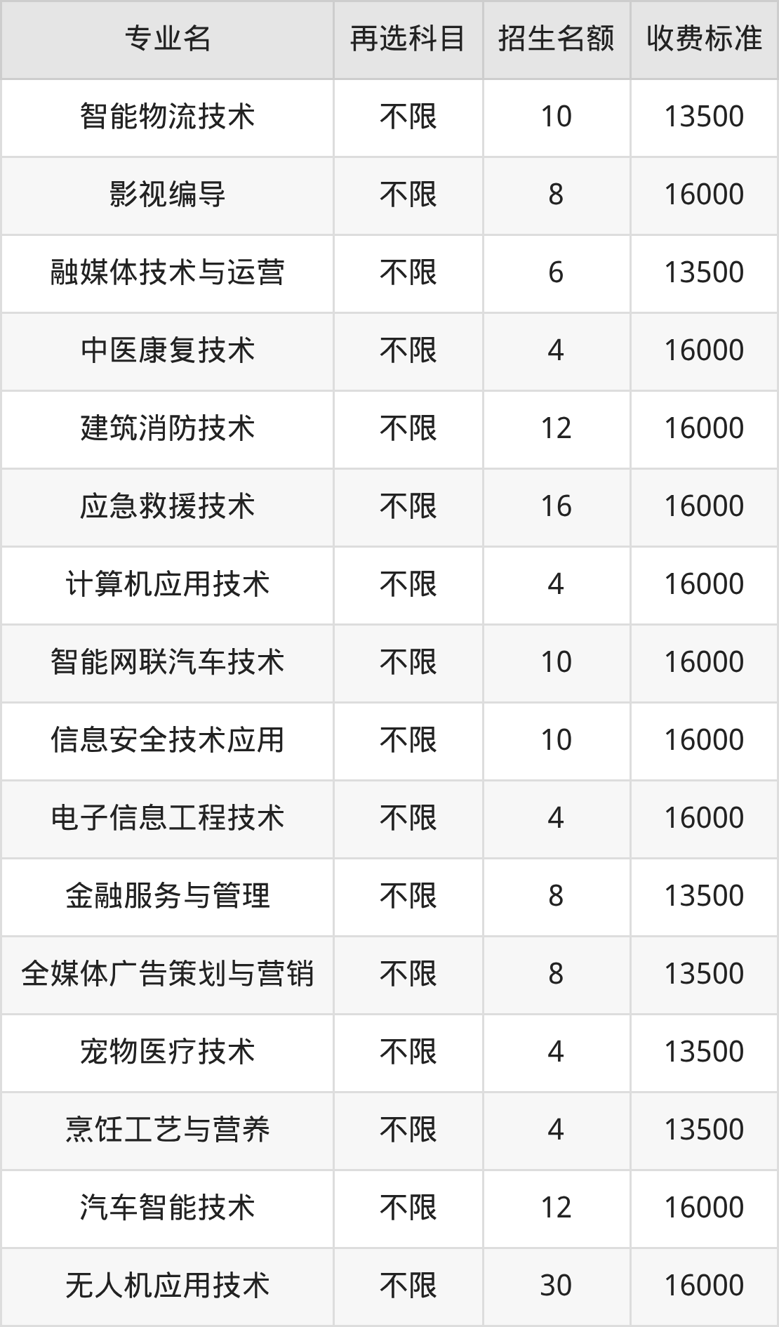 48.无人机应用技术:学费是16000元