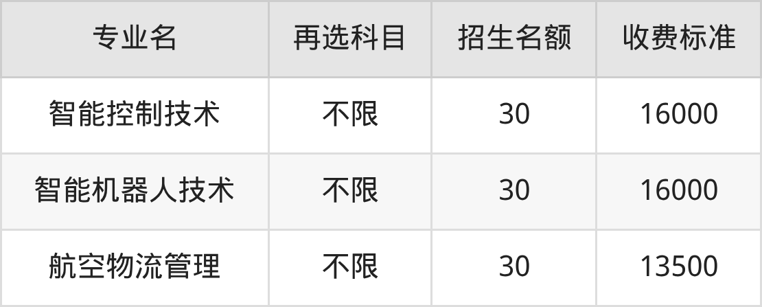 | 高职专科批 | 历史 | 航空物流管理 | 30 |