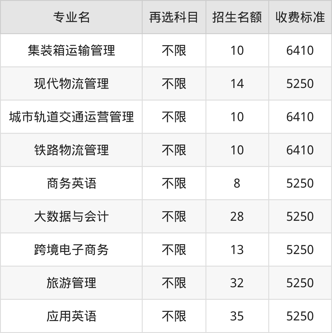 广州铁路职业技术学院在历史组专科高职批招生的各个专业,每年的学费是5250元-6410元。招生人数最多的专业是应用英语,2025年招35人,学费是5250元。