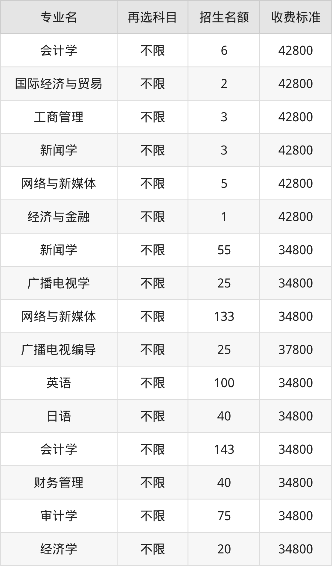 | 本科批 | 历史 | 网络与新媒体 | 133 |