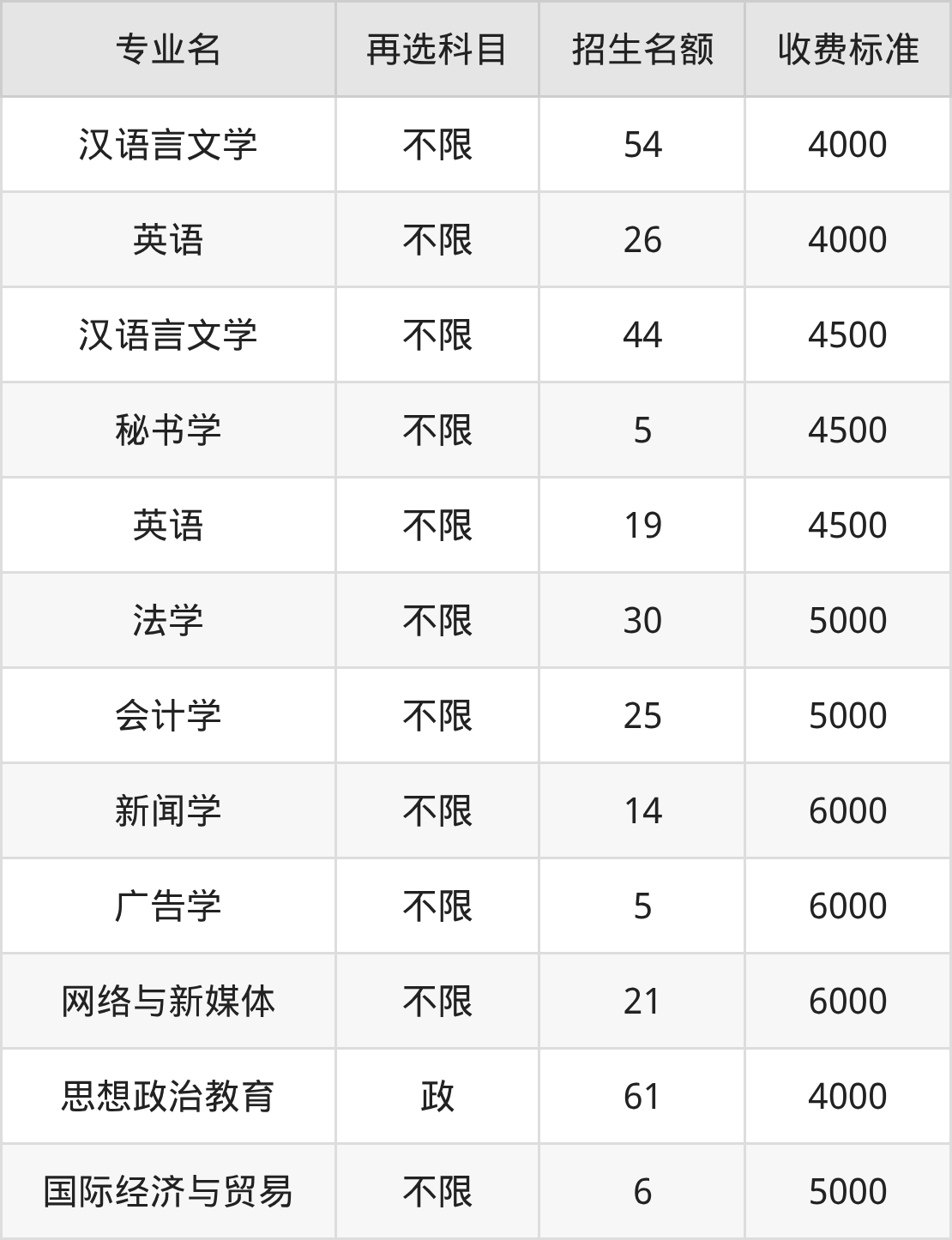 6.国际经济与贸易:学费是5000元