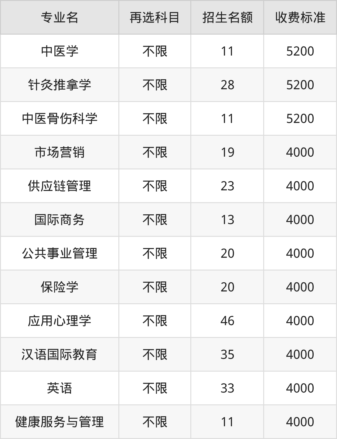 | 本科批 | 历史 | 健康服务与管理 | 11 |