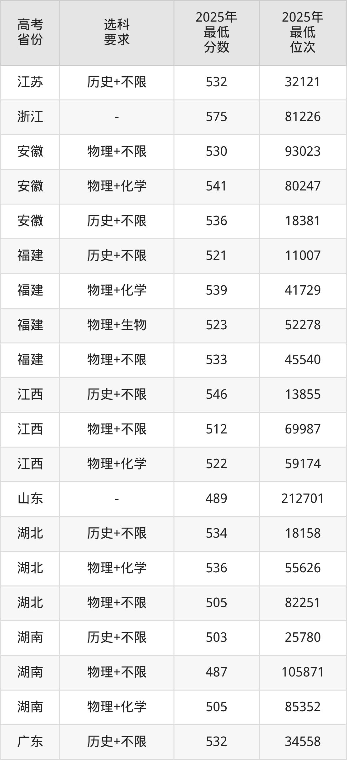在2025年江苏高考物理类招生时,211收分最低的是东北师范大学05组(中外合作办学),最低分是531分、位次是119385位。再看金陵科技学院,2025年在江苏物理类的最低录取分数线是463分,最低位次是205975位。