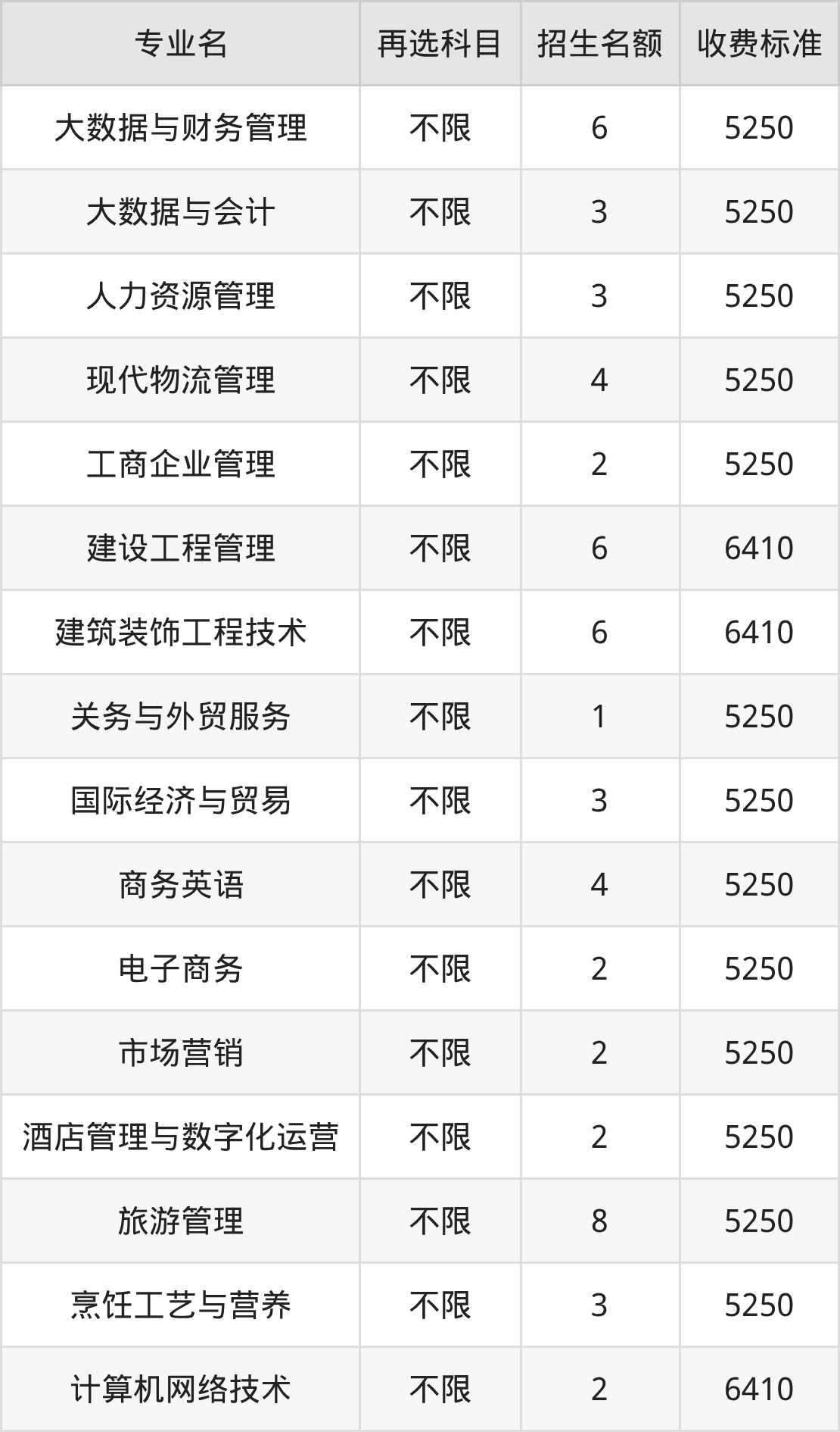 | 专科高职批 | 历史 | 大数据与财务管理 | 6 |