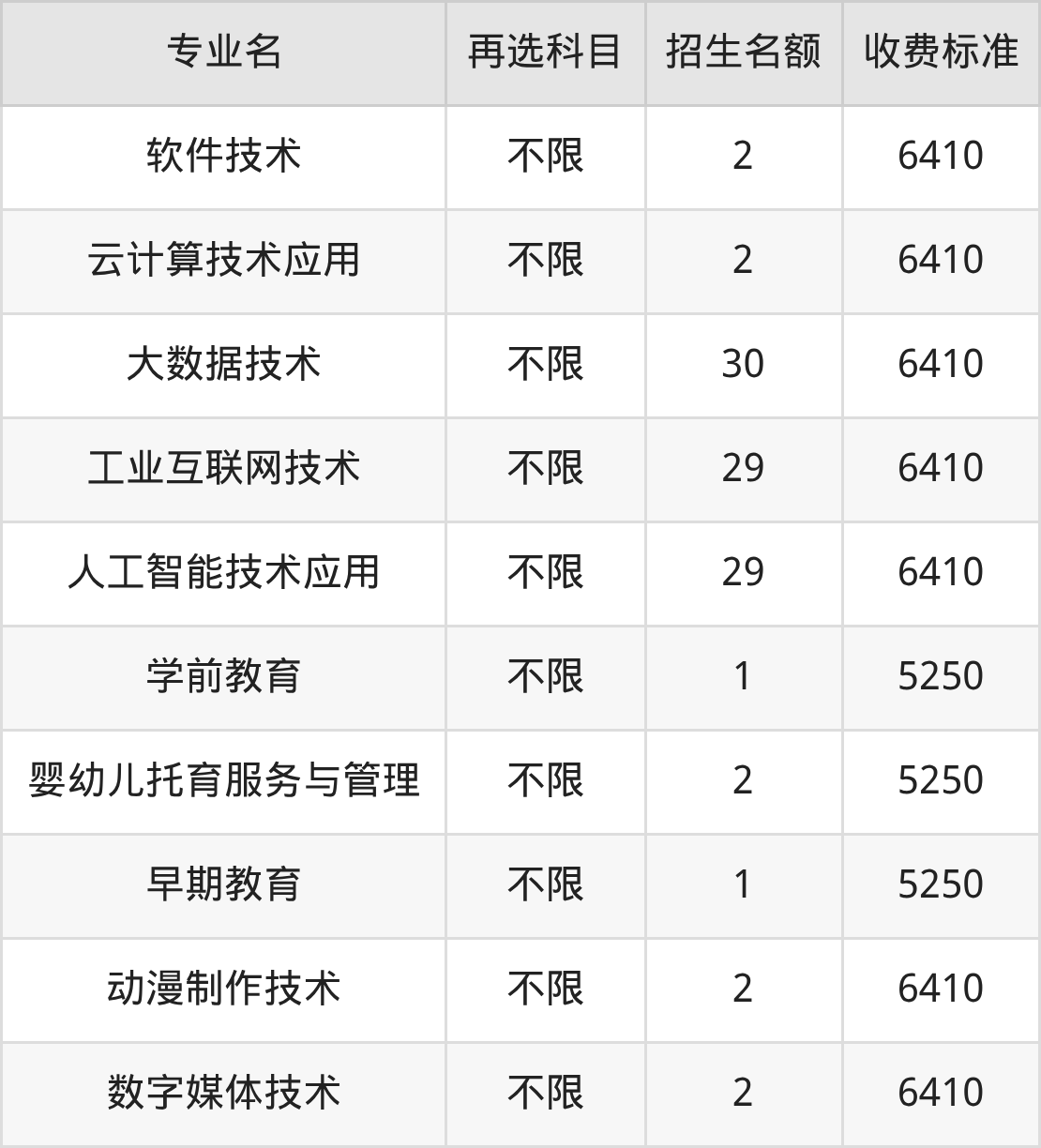 | 专科高职批 | 历史 | 软件技术 | 2 |