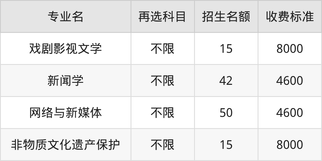 | 本科批 | 历史 | 网络与新媒体 | 50 |