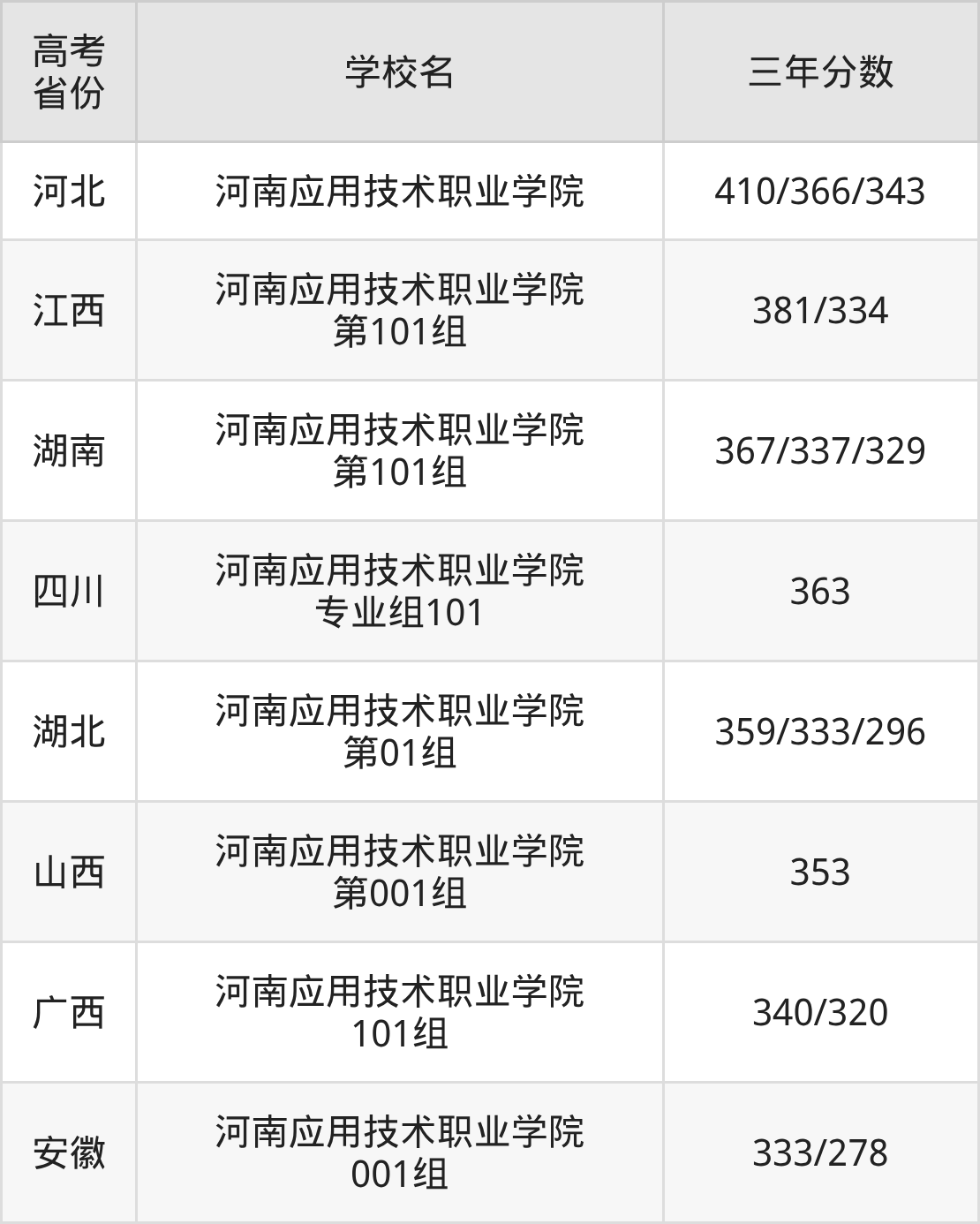 | 四川 | 河南应用技术职业学院 专业组101 | 360 |