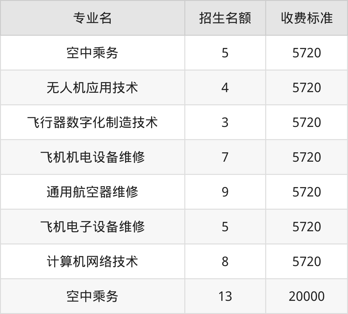 二、成都航空职业技术学院各专业收费标准