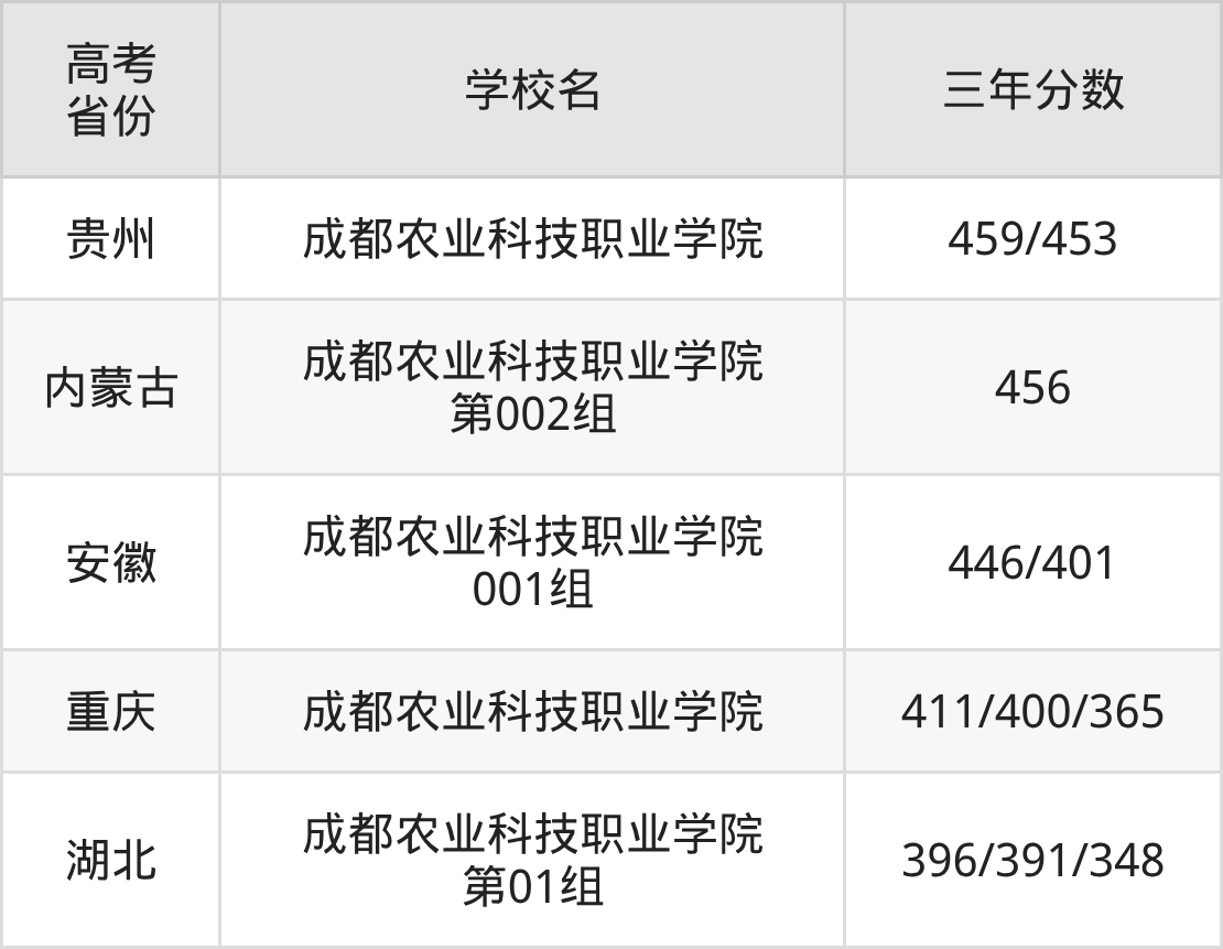 | 贵州 | 成都农业科技职业学院 | 383/381 |