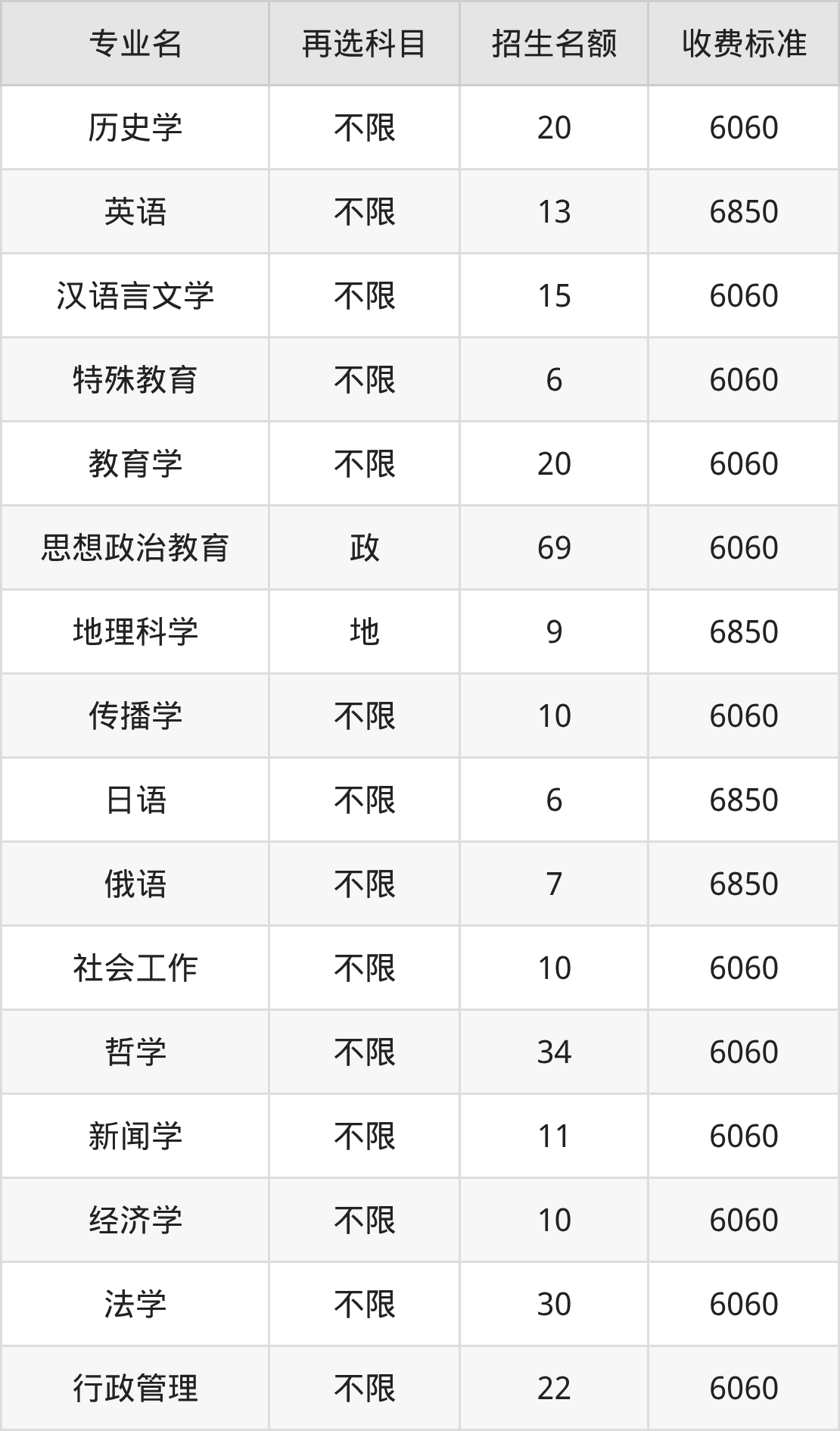 | 本科批 | 历史 | 教育学 | 20 |