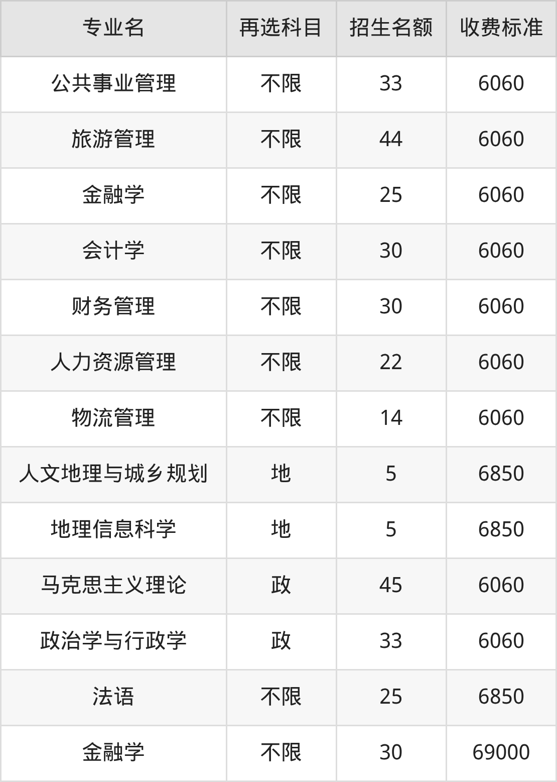 | 本科批 | 历史 | 金融学 | 25 |