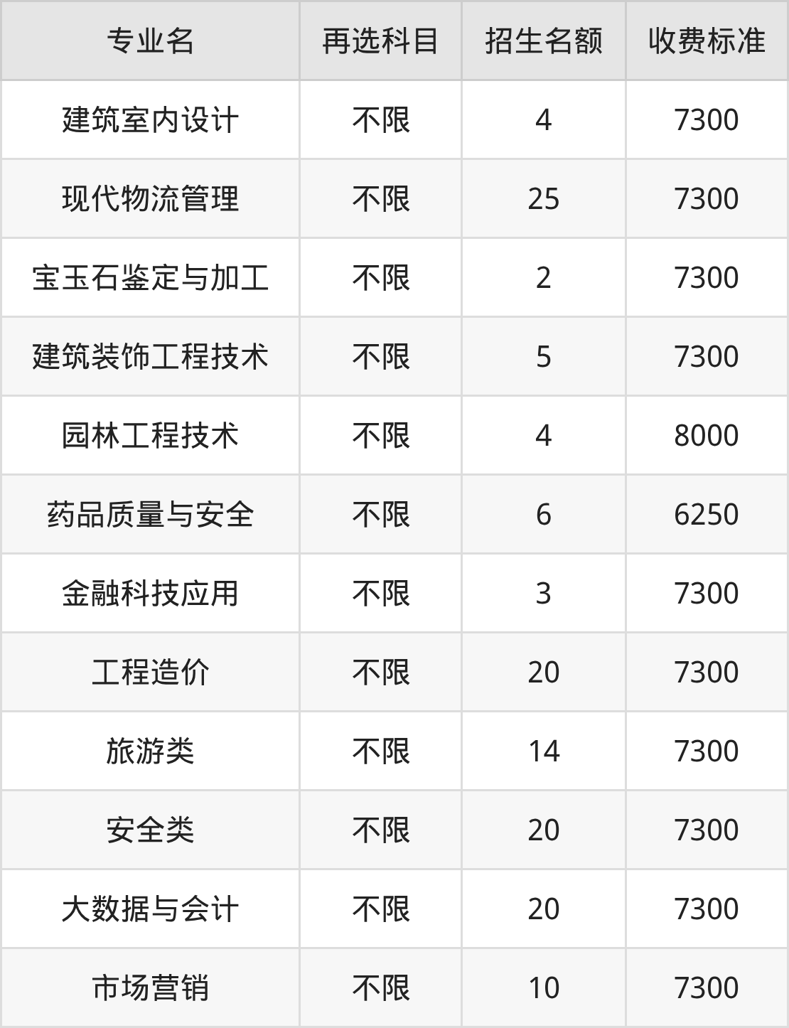| 高职专科批 | 历史 | 园林工程技术 | 4 |