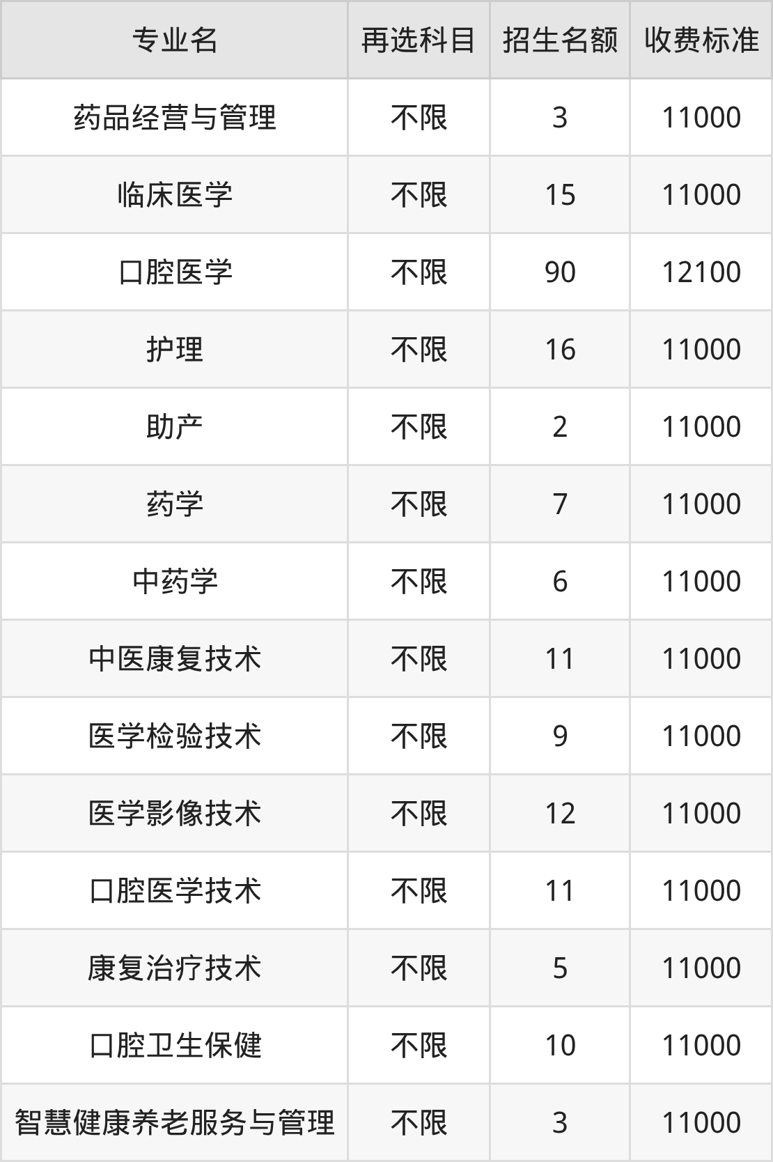 | 高职专科批 | 历史 | 药品经营与管理 | 3 |