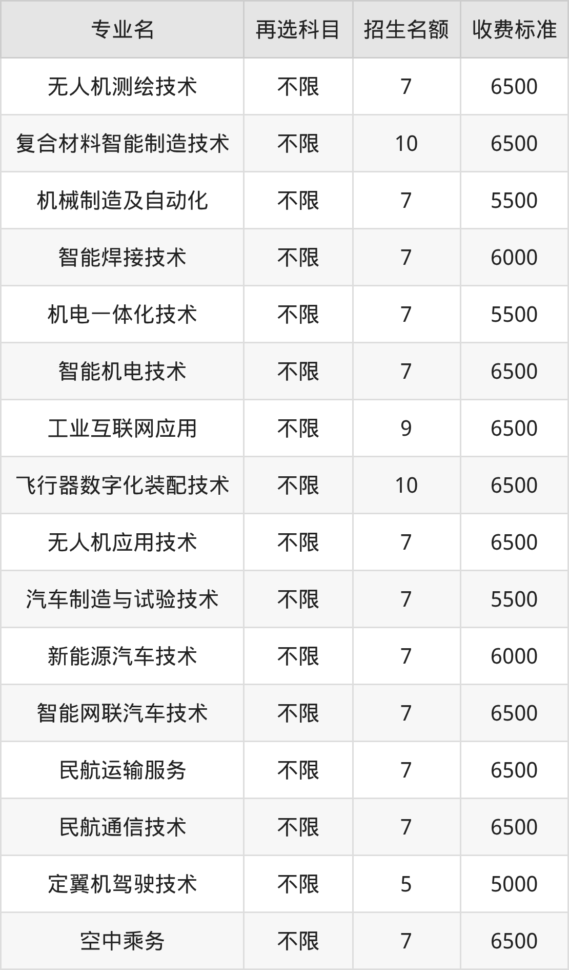 吉林通用航空职业技术学院在历史组专科高职批招生的各个专业,每年的学费是4000元-7000元。招生人数最多的专业是复合材料智能制造技术,2025年招10人,学费是6500元。