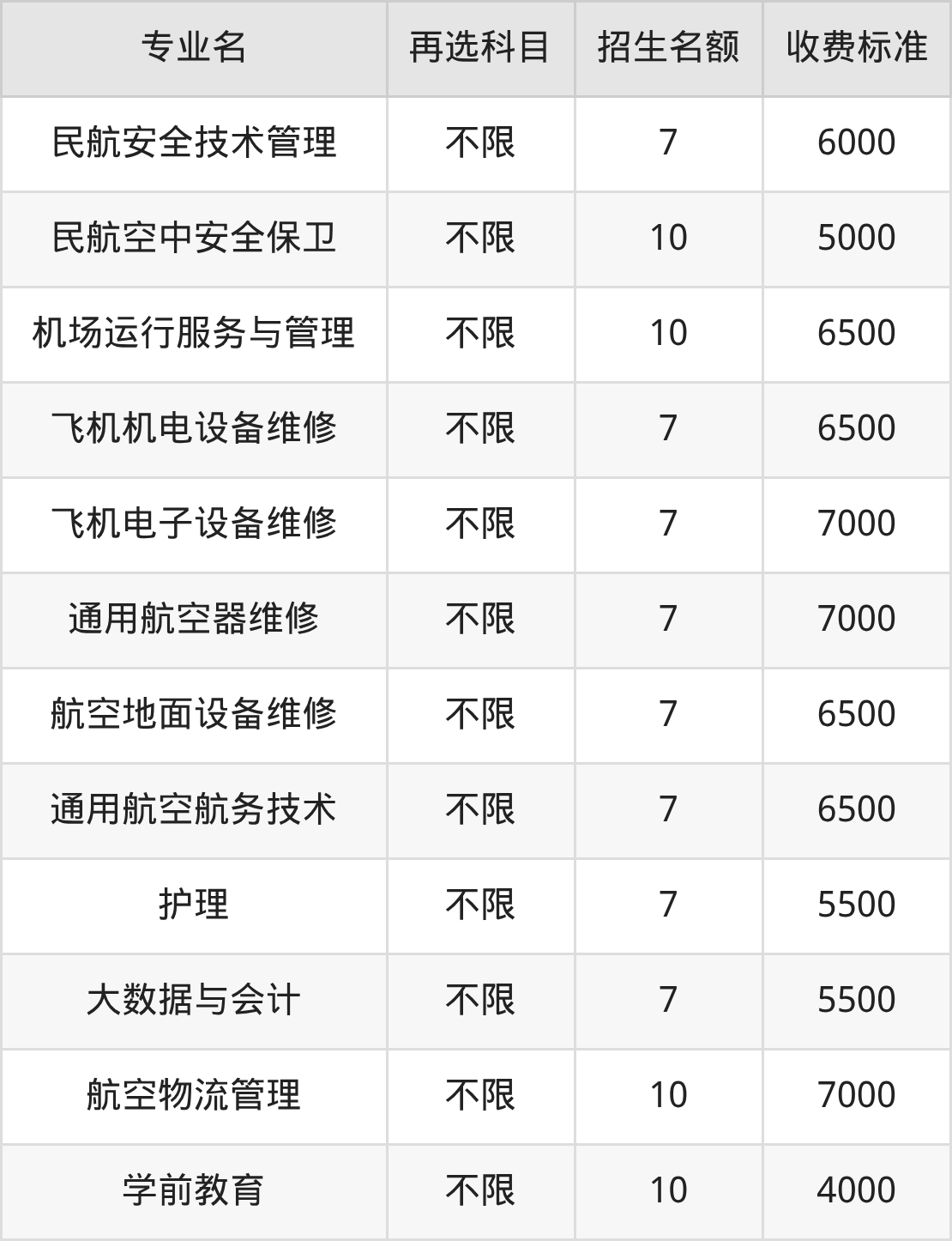 | 专科高职批 | 历史 | 航空物流管理 | 10 |