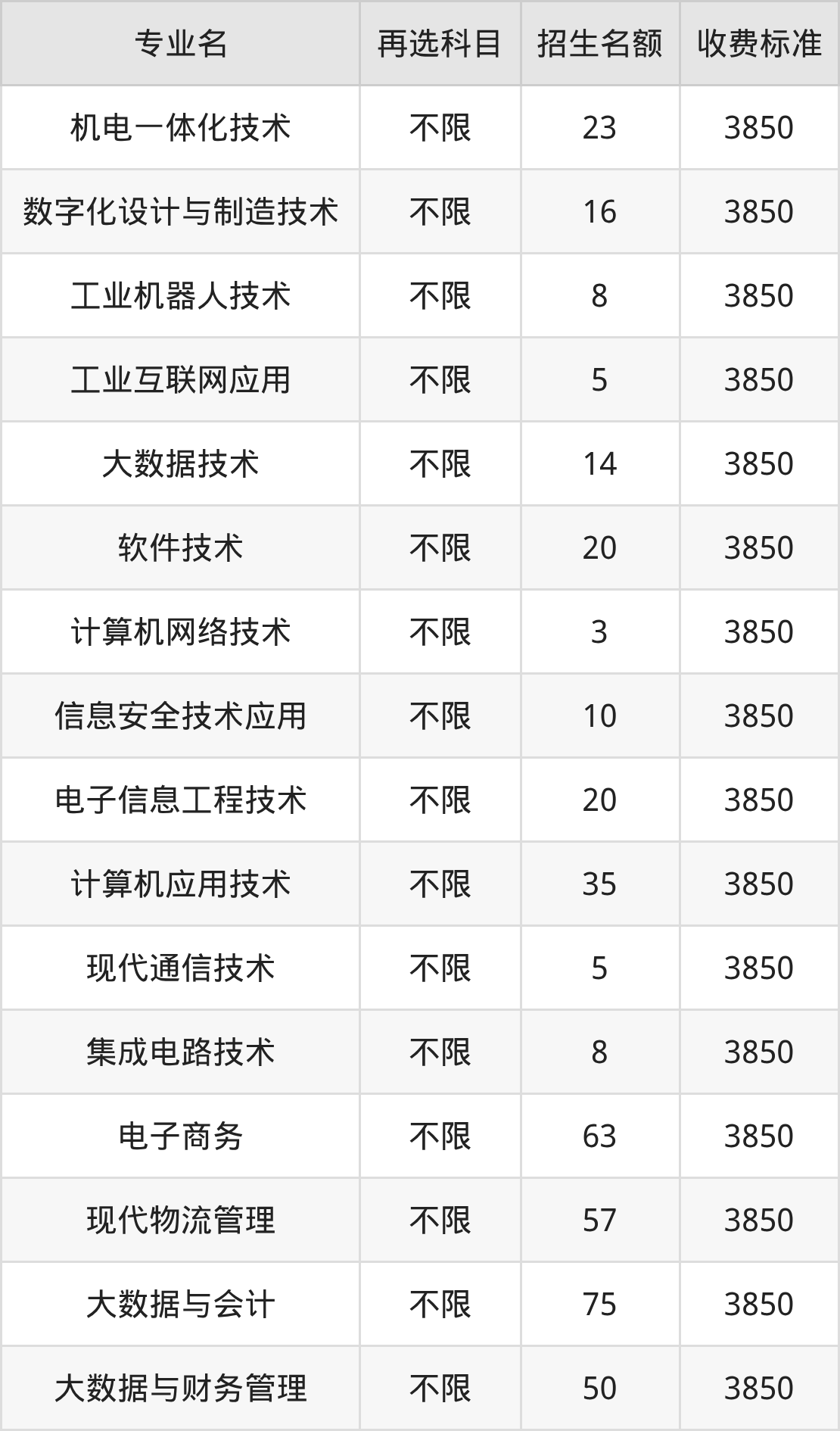 1.机电一体化技术:学费是3850元