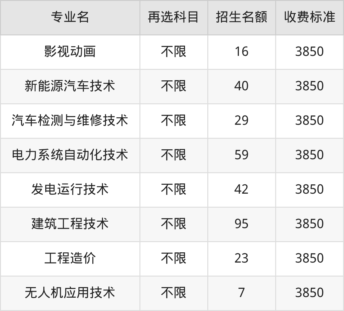 贵州电子信息职业技术学院在历史组高职专科批招生的各个专业,每年的学费是3850元。招生人数最多的专业是建筑工程技术,2025年招95人,学费是3850元。