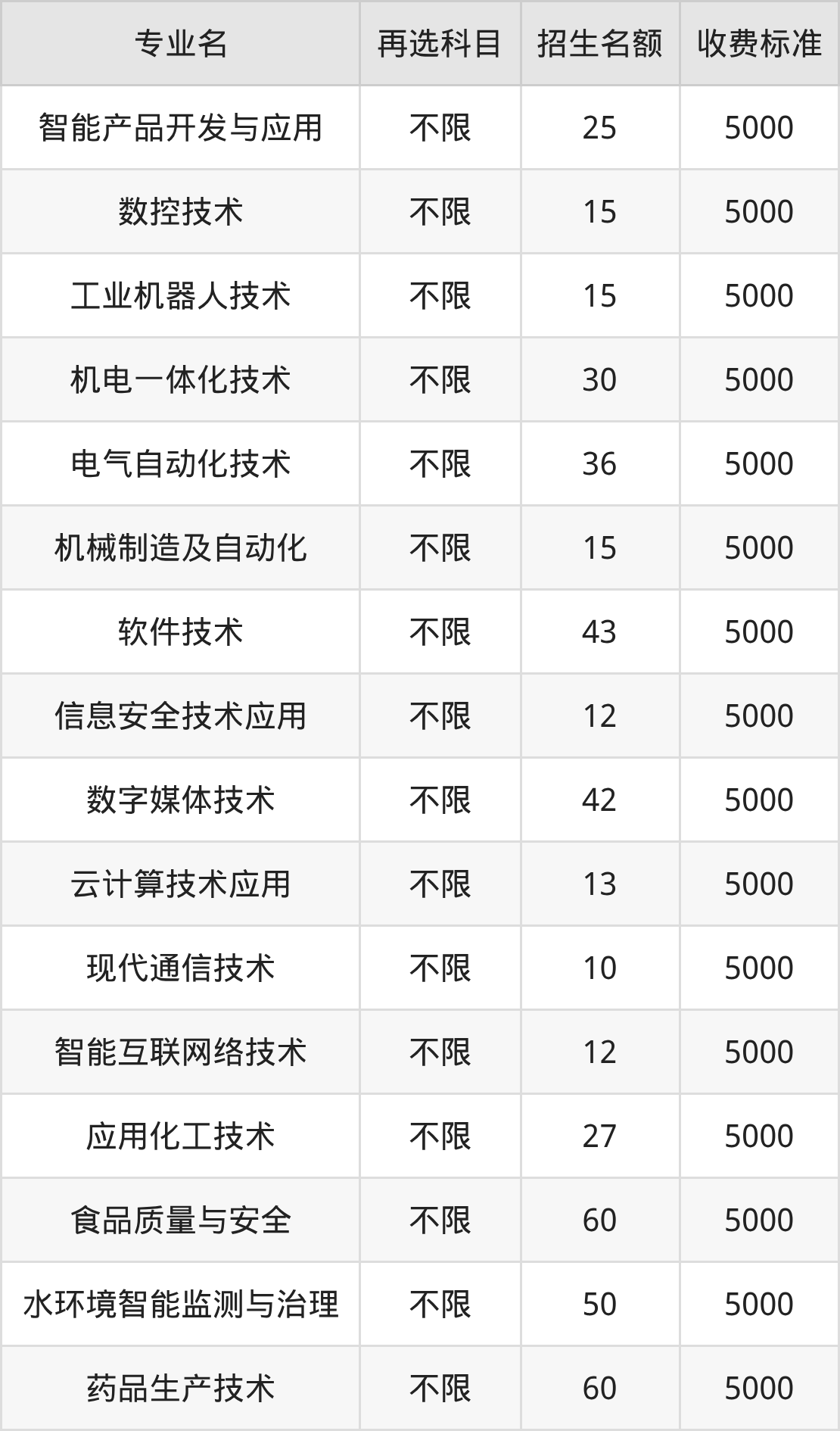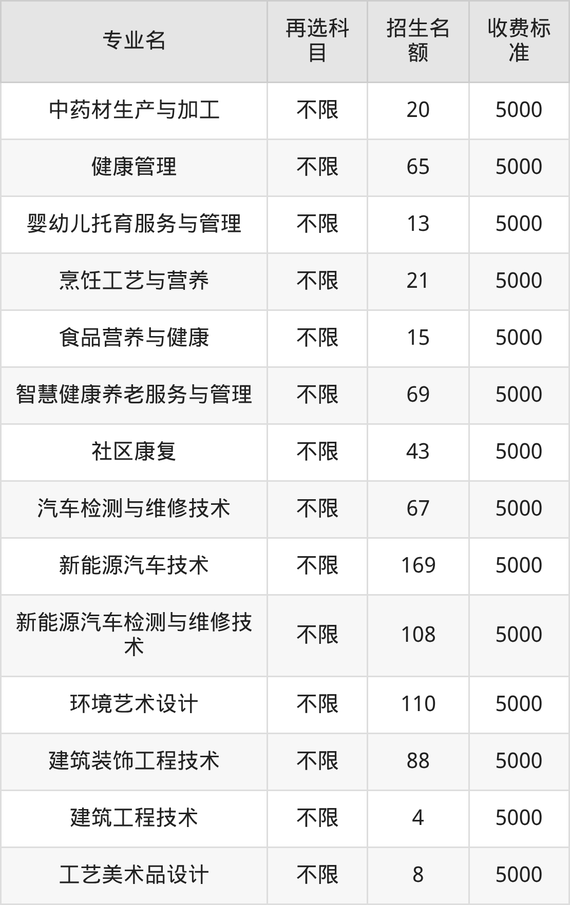 云南工贸职业技术学院在历史组高职专科批招生的各个专业,每年的学费是5000元。招生人数最多的专业是新能源汽车技术,2025年招169人,学费是5000元。