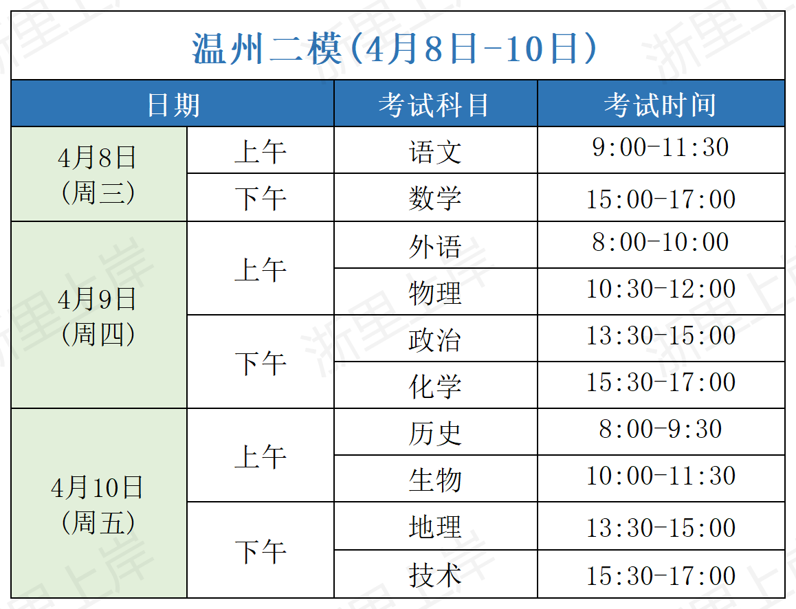 近期,2026届浙江各地市高三二模考试时间已陆续确定。整体来看,绝大多数地市的二模安排在清明节后,即4月7日至10日之间集中开考,部分地市如湖丽衢三地市联考则安排在4月中旬(14日至16日)。