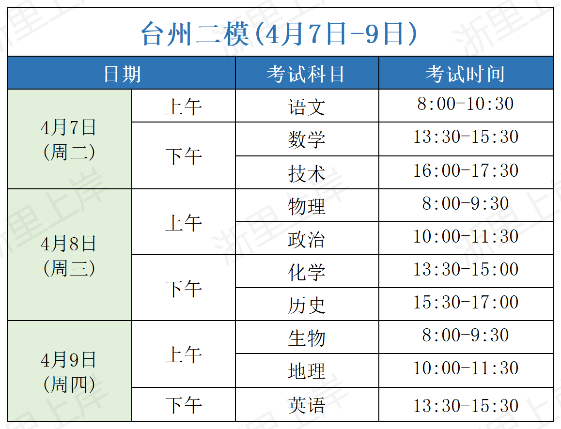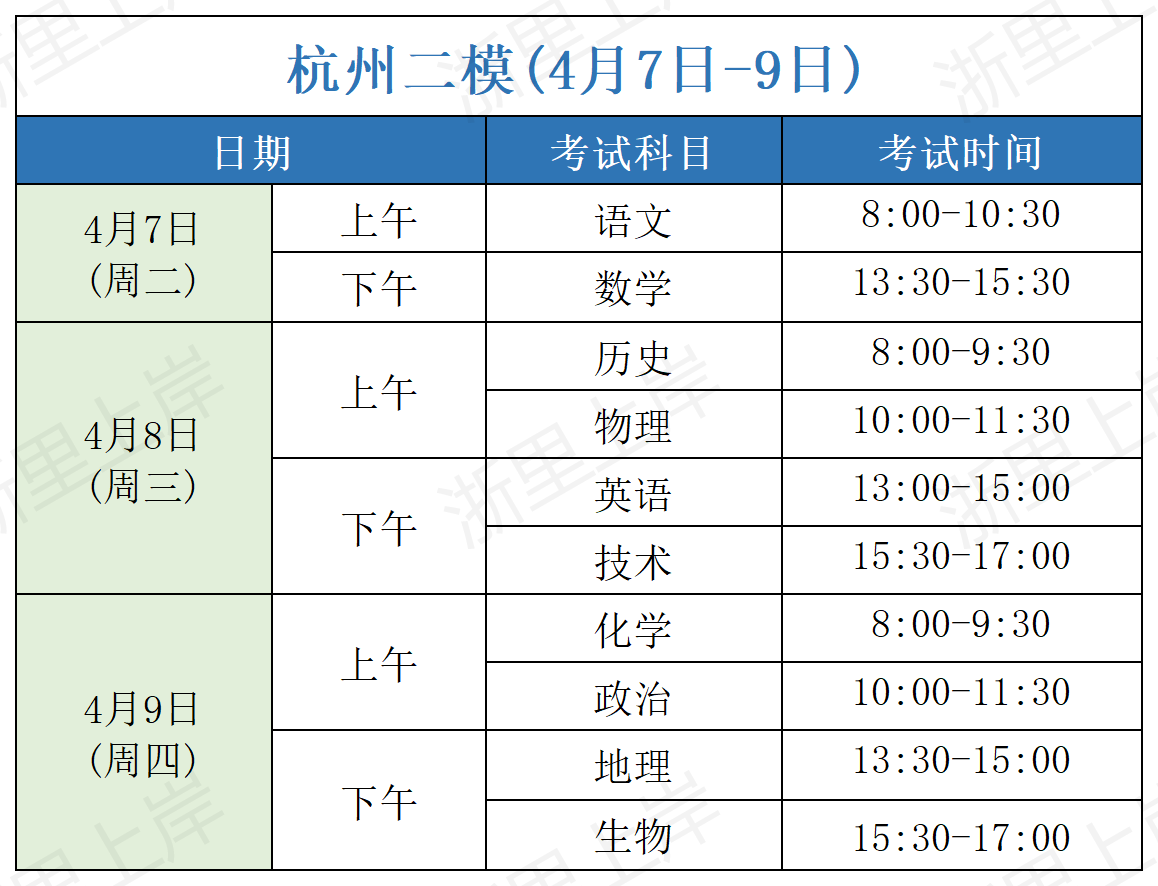 一、2026届浙江高三二模考试时间安排表汇总