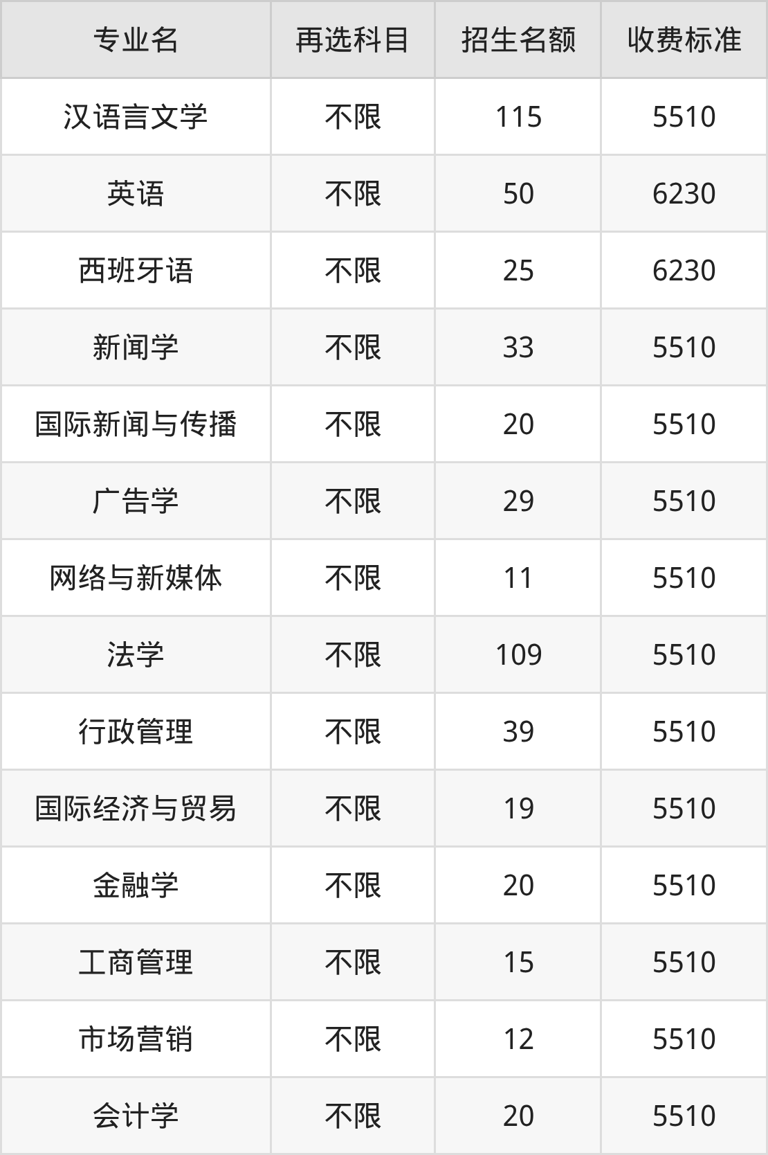 4.新闻学:学费是5510元