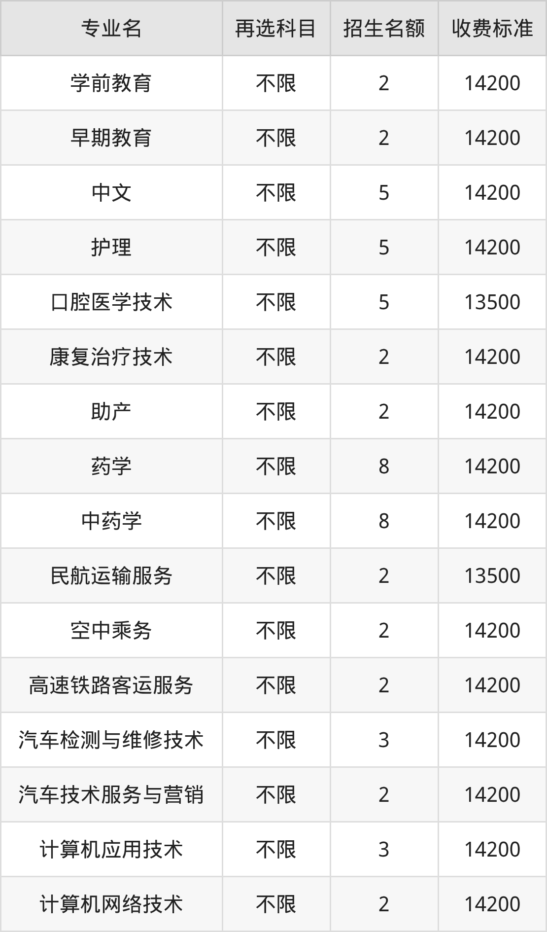 | 高职专科批 | 物理 | 民航运输服务 | 2 |