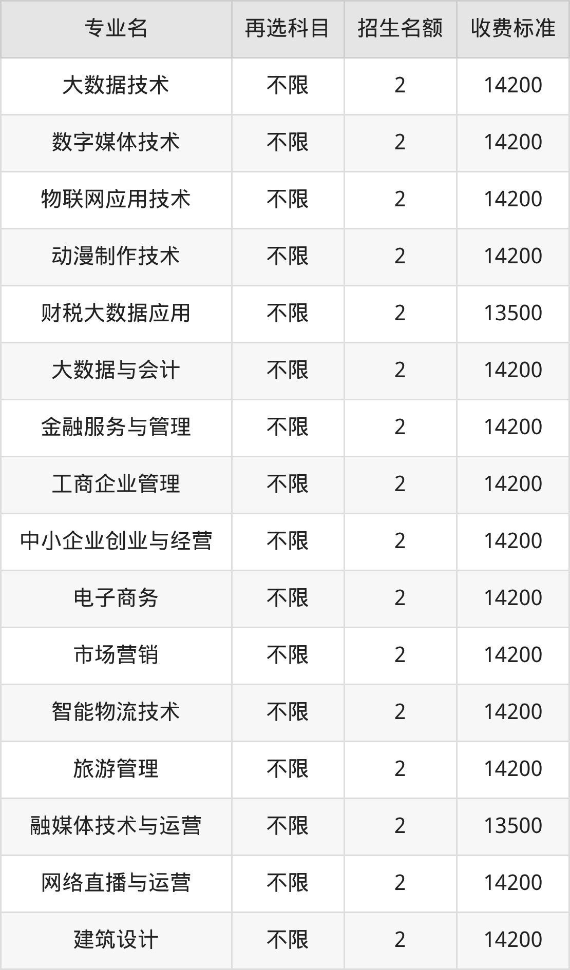 | 高职专科批 | 物理 | 建筑工程技术 | 2 |