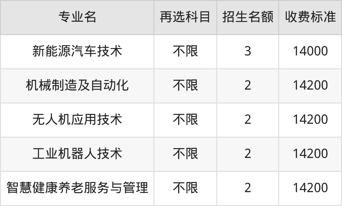 | 高职专科批 | 物理 | 数控技术 | 2 |