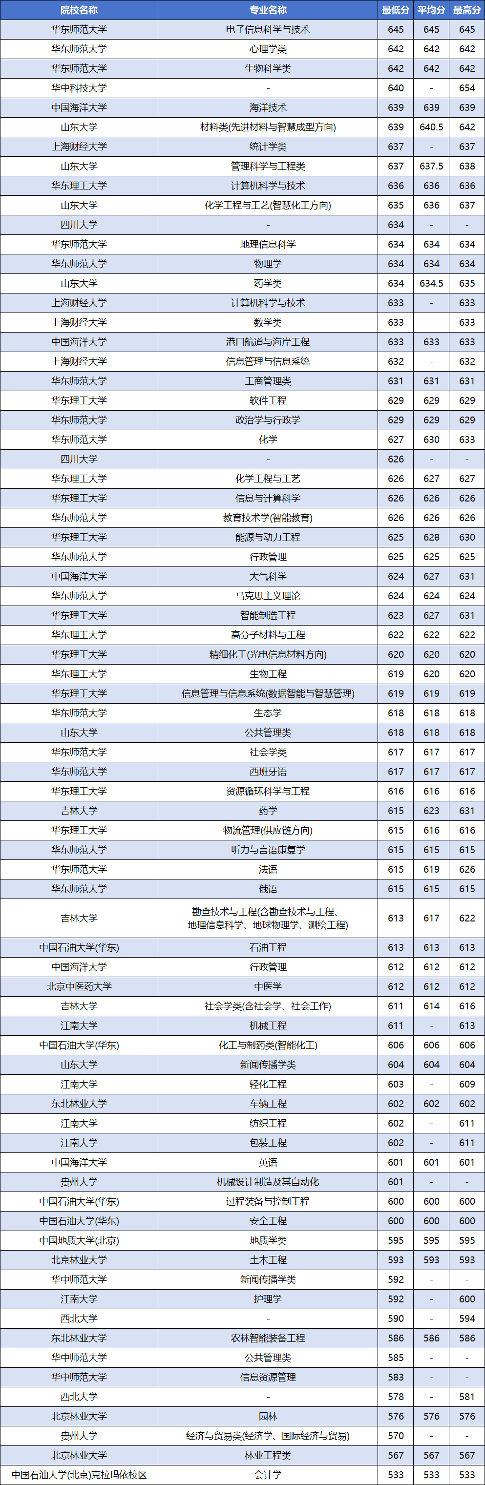 2025年高校专项计划大学在江苏省录取分数线在533-645分之间,录取分数线最高的是华东师范大学,录取分数线最低的是中国石油大学(北京)克拉玛依校区,招生专业为会计学。