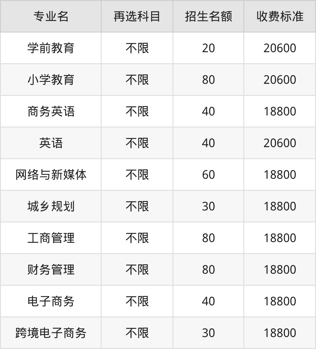 荆州学院在历史组本科批招生的各个专业,每年的学费是18800元-20600元。招生人数最多的专业是小学教育,2025年招80人,学费是20600元。