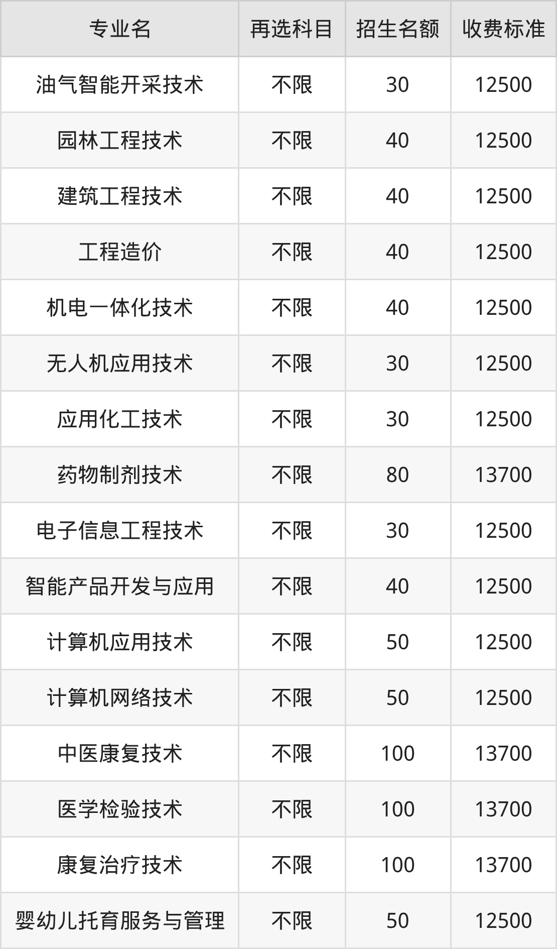 荆州学院在历史组高职高专批招生的各个专业,每年的学费是12500元-13700元。招生人数最多的专业是中医康复技术,2025年招100人,学费是13700元。