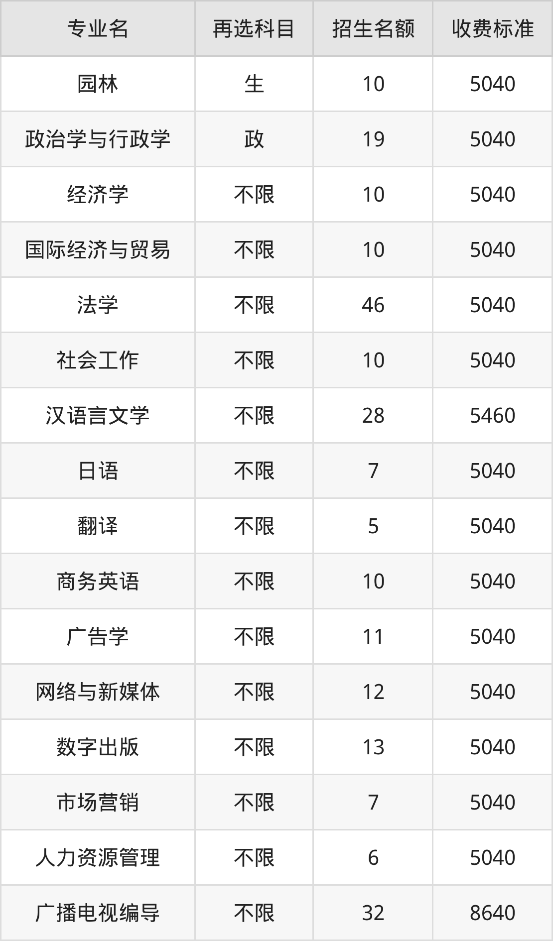 | 本科批 | 历史 | 园林 | 10 |