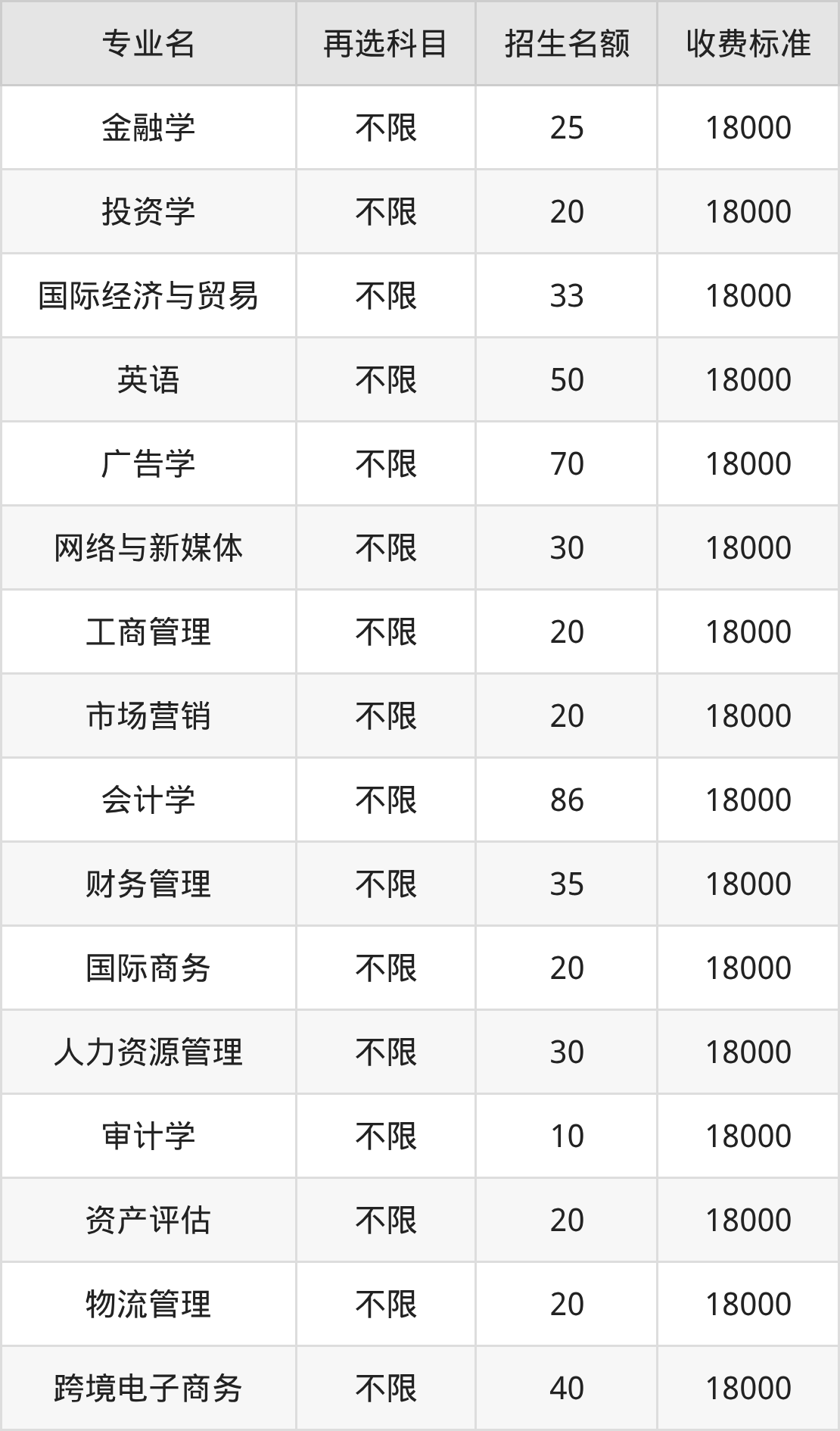6.国际经济与贸易:学费是18000元