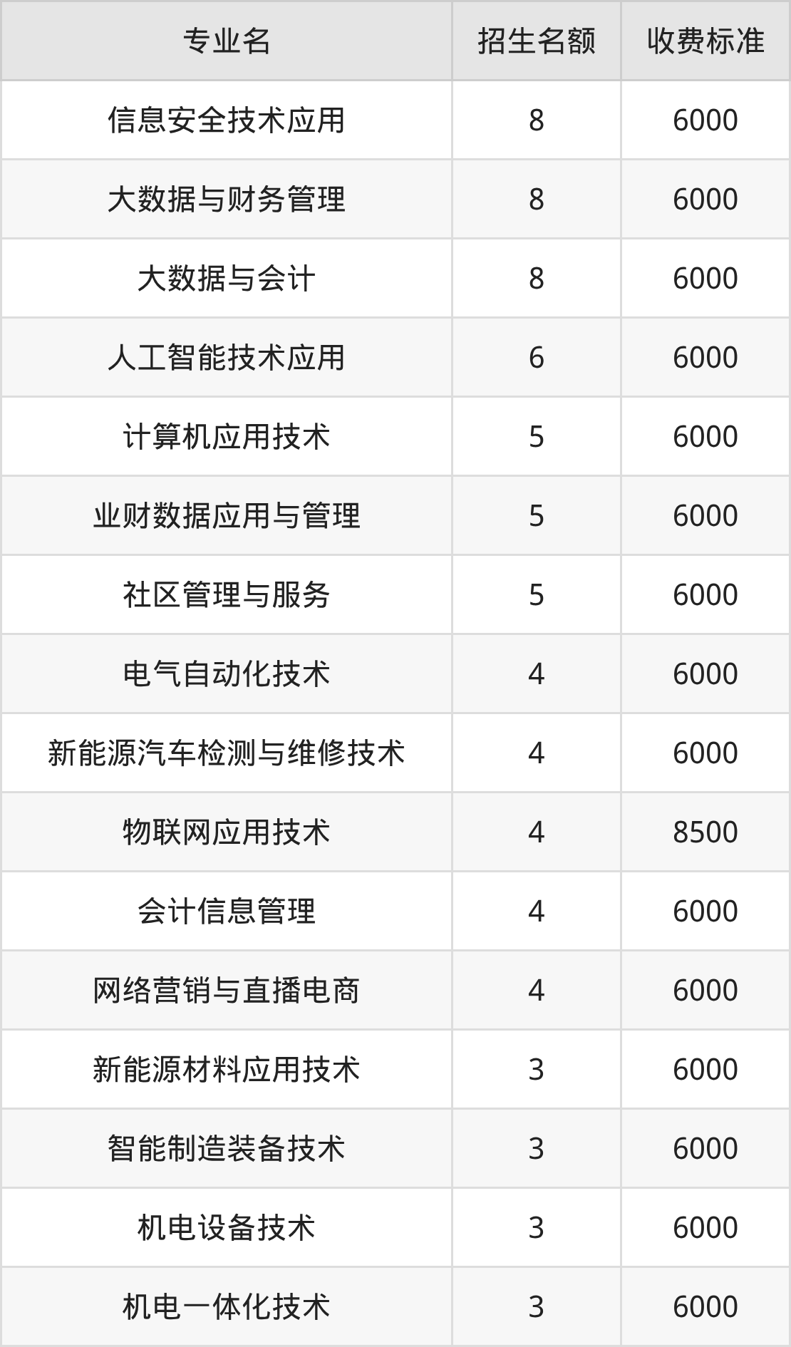 5.机电一体化技术:学费是6000元
