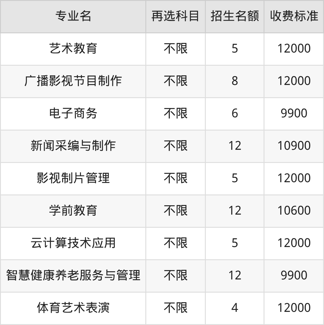 | 高职专科批 | 历史 | 艺术教育 | 5 |