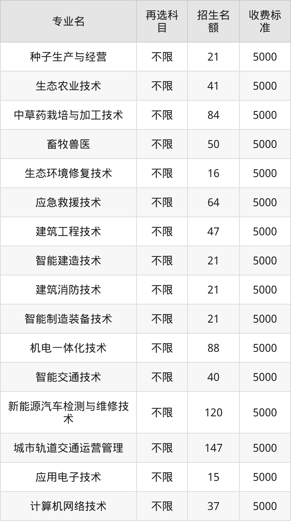 11.机电一体化技术:学费是5000元