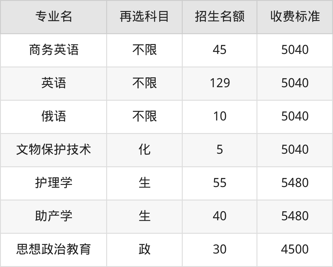 山西大同大学在历史组本科批招生的各个专业,每年的学费是4500元-5800元。招生人数最多的专业是汉语言文学,2025年招144人,学费是5040元。