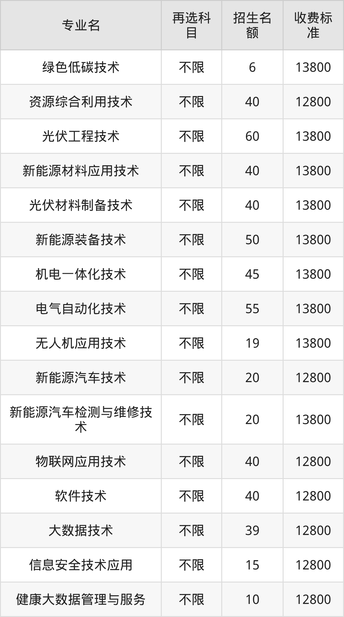 | 专科批 | 历史 | 光伏工程技术 | 60 |